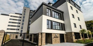 Supply and installation of rainscreen cladding and aluminium copings and fascias on this apartment building in Lancashire