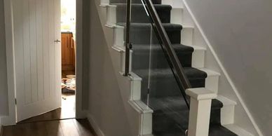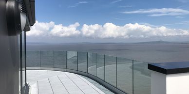 Supply and installation of frameless glass balustrade to seafront apartments, including aluminium pressings to cover the channel.