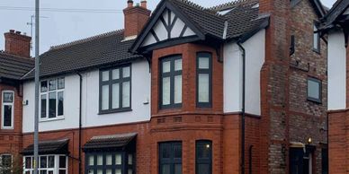 Supply and installation of flush-sash anthracite UPVC windows and doors on a refurbished home in the suburbs of Manchester